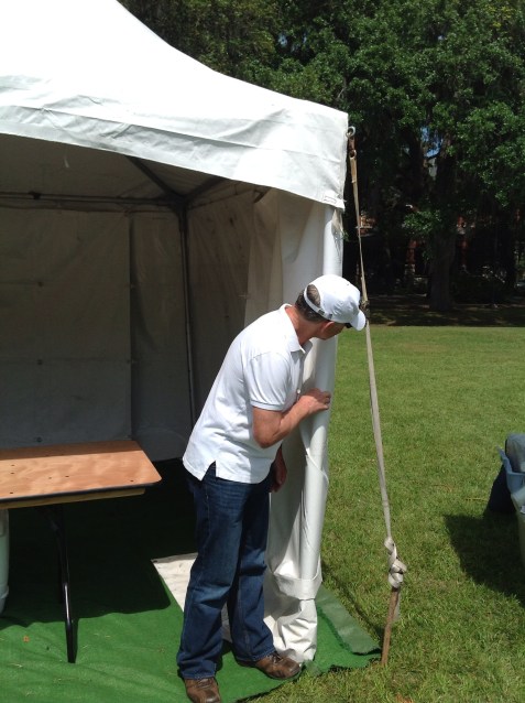 At one point I saw an empty tent booth, decided to take advantage of it, and offer a service of my own: