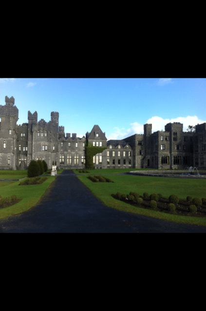 I just assumed he would be lodging at Ireland’s equivalent to Motel 6 or Sleep Inn.  But no–a real, live castle!  It’s called Ashford Castle.  When Ribo told me where he was staying, I hooted and asked him to find a throne or something to sit on and snap a pic, but so far these are what I’ve gotten: