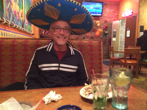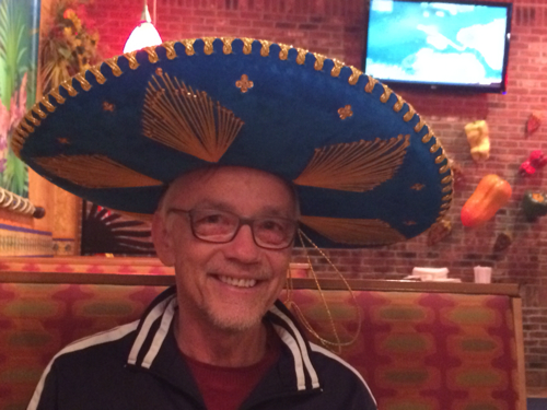 2. Speaking of celebrations, as some of you know, the #%*! birthday of Yours Truly occurred earlier this month. What you don’t know is that, for some reason (which I should probably discuss with my therapist), I HATE being sung Happy Birthday to at restaurants. It just SO embarrasses me. I turn beet red. So when daughter Amy suggested La Parrilla for my family bday celebratory meal, I IMMEDIATELY said, “NO!” (probably too loudly) because of the huge sombrero …