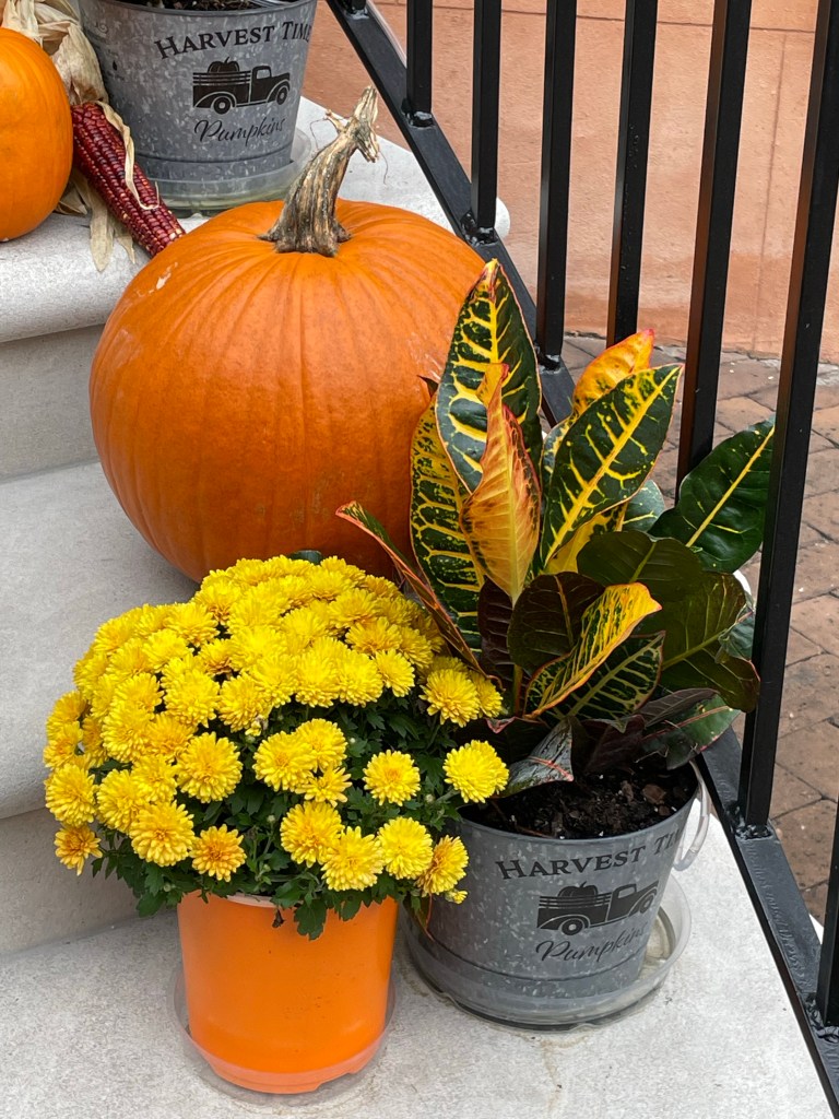 On a stroll this morning, I decided to ignore the leftover Halloween displays and just concentrate on Fall. Here’s a sampling of what yelled “Hello there, look at me!”