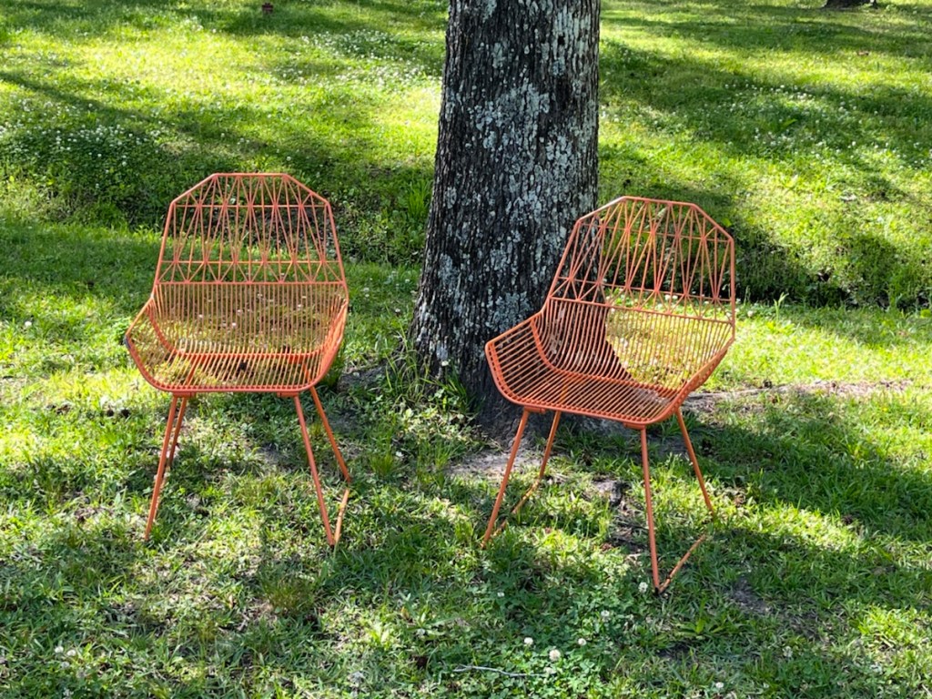 HR and OrangeWaiting outside Laney Contemporary Art Gallery (for it to open up). We saw and heard an exuberant hawk. We walked through white clover. We sat in orange chairs. We loved this greening tree. (More about the incredible gallery in another post.)