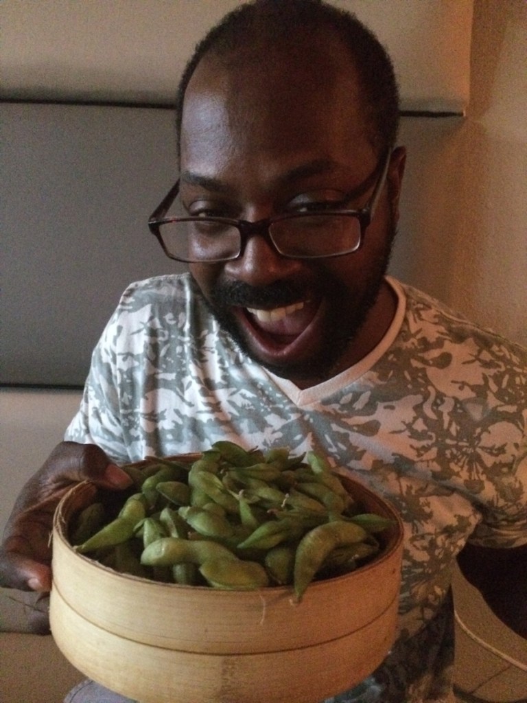 Robert and … edamame. And gaily expressing beyond-normal happiness about it.
