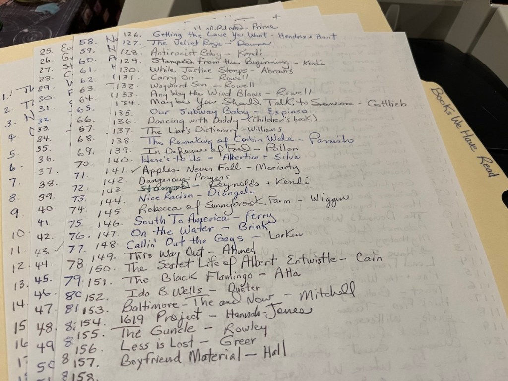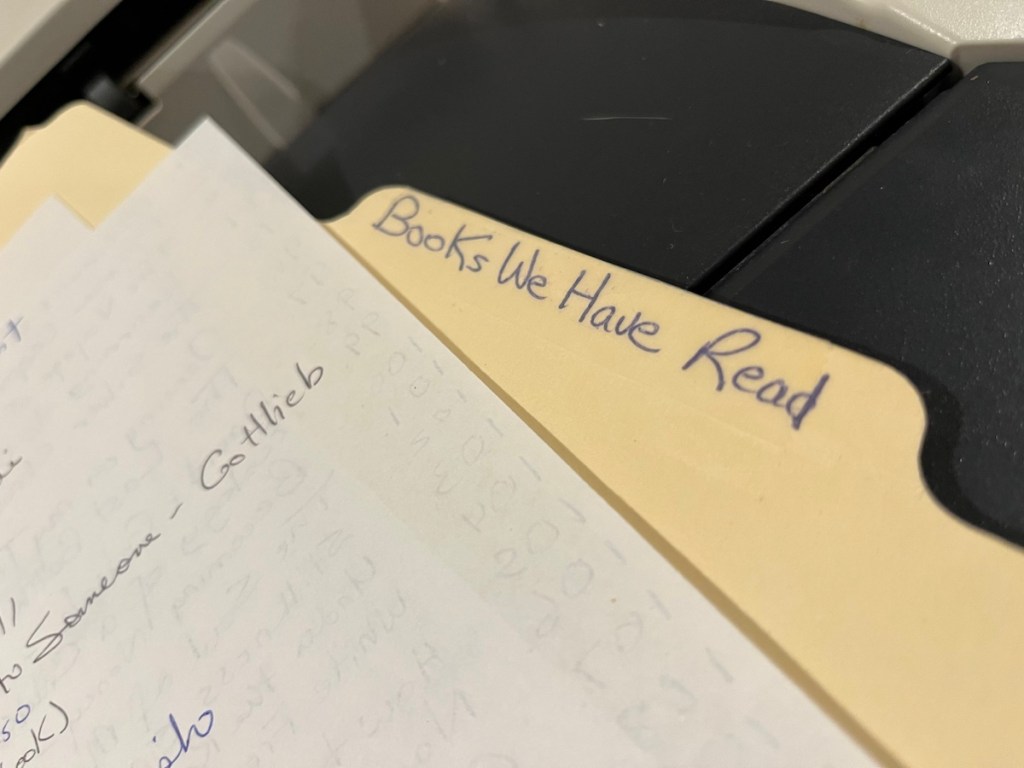 Nerd that I am, I keep a record of our readings.