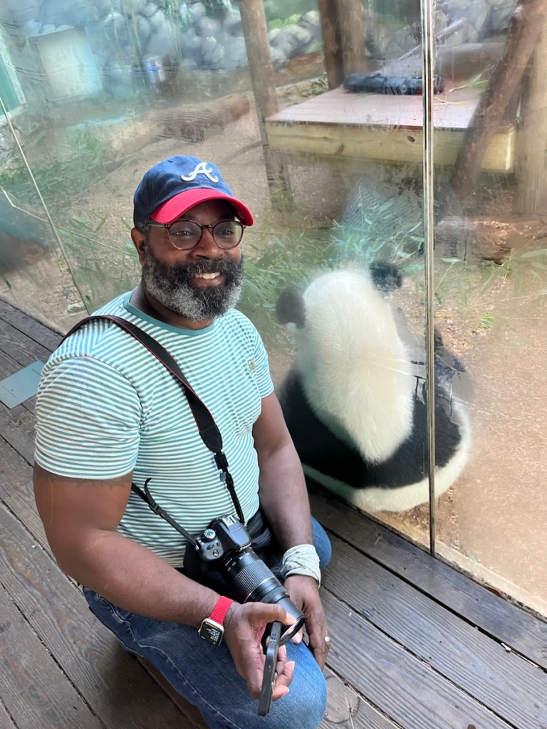 1. Robert and a shy panda at Zoo Atlanta on Monday.