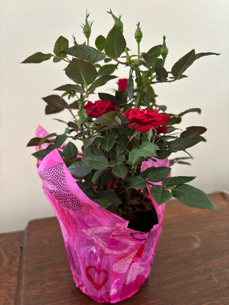 Unbeknownst ahead of time, Robert gave me roses, and I gave him a rose bush.