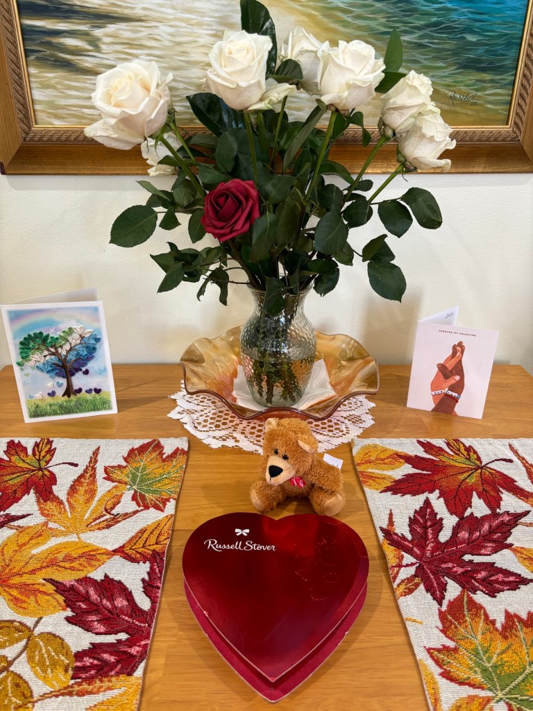 1. Love this and I agree, if one is good 3 cards are better . That’s definitely frame worthy. What’s that they say about great minds thinking alike?must be true, you both got each other roses 🌹 Happy belated Valentine’s Day , looks like you both had a wonderful one.
