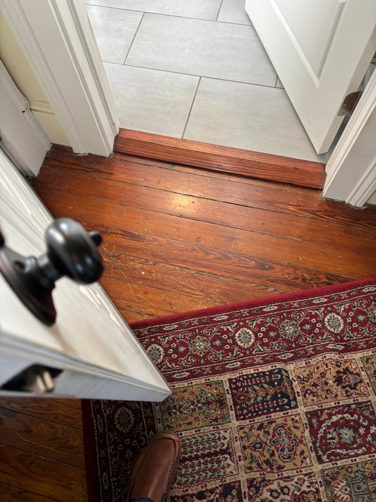 And apparently, so does my iPhone’s camera. For as I was walking out our front door the other day, minding my own business, my phone looked down and somehow without my assistance snapped a quick photo of our hallway floor, etc.,etc., including my left shoe.