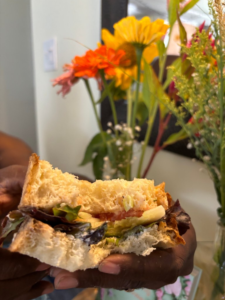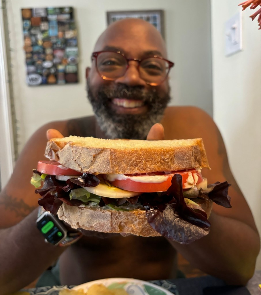 Marveling at the JOY of having our first local, vine-ripe tomato sandwich for 2024.
