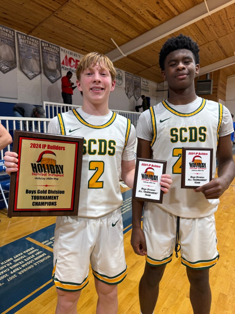 2. Athletic Grandson Gabriel, along with teammate Peyton, earning the All Tournament Team award AS FRESHMEN after Savannah Country Day School won their Holiday Basketball Tournament.
