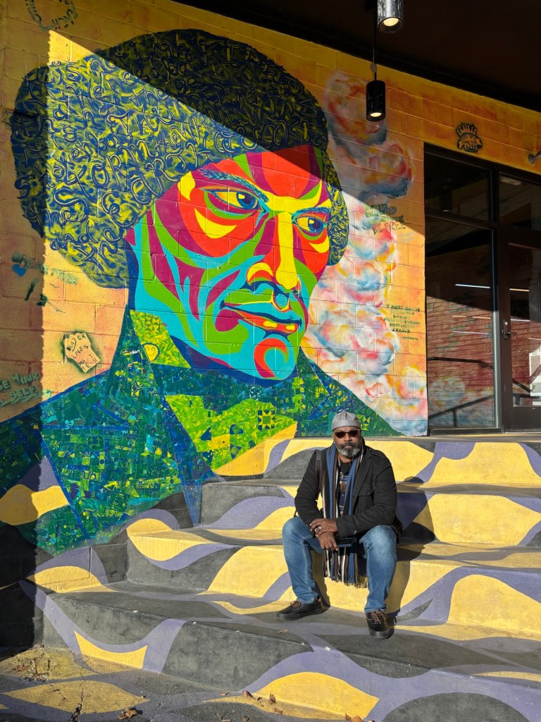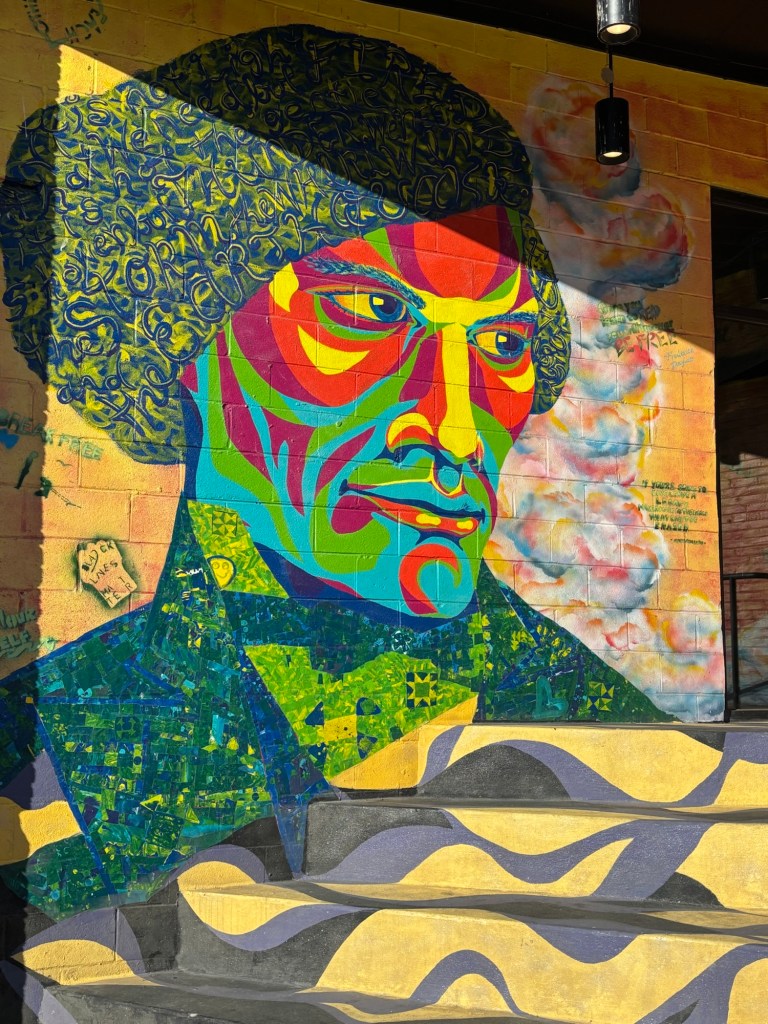 5. HR in front of this cool mural near the Inner Harbor in Baltimore.