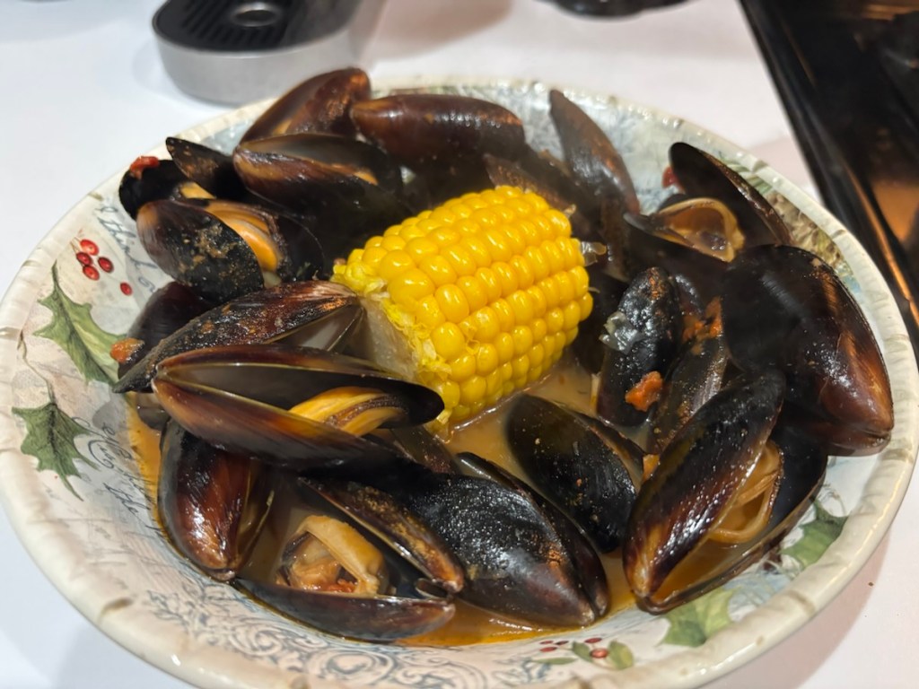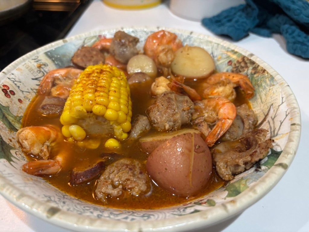 Tonight Robert had leftover Low Country Boil (from our Christmas Day “New Traditional” Supper) …