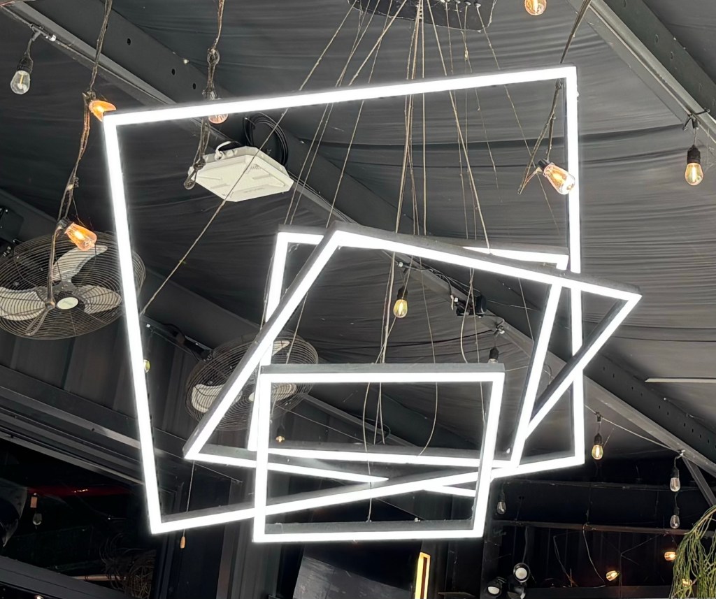 4. This ceiling light at a local indoor—outdoor restaurant.