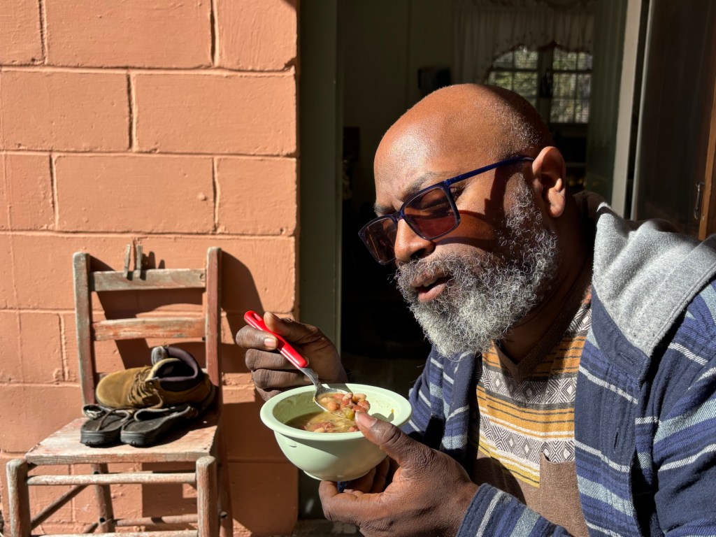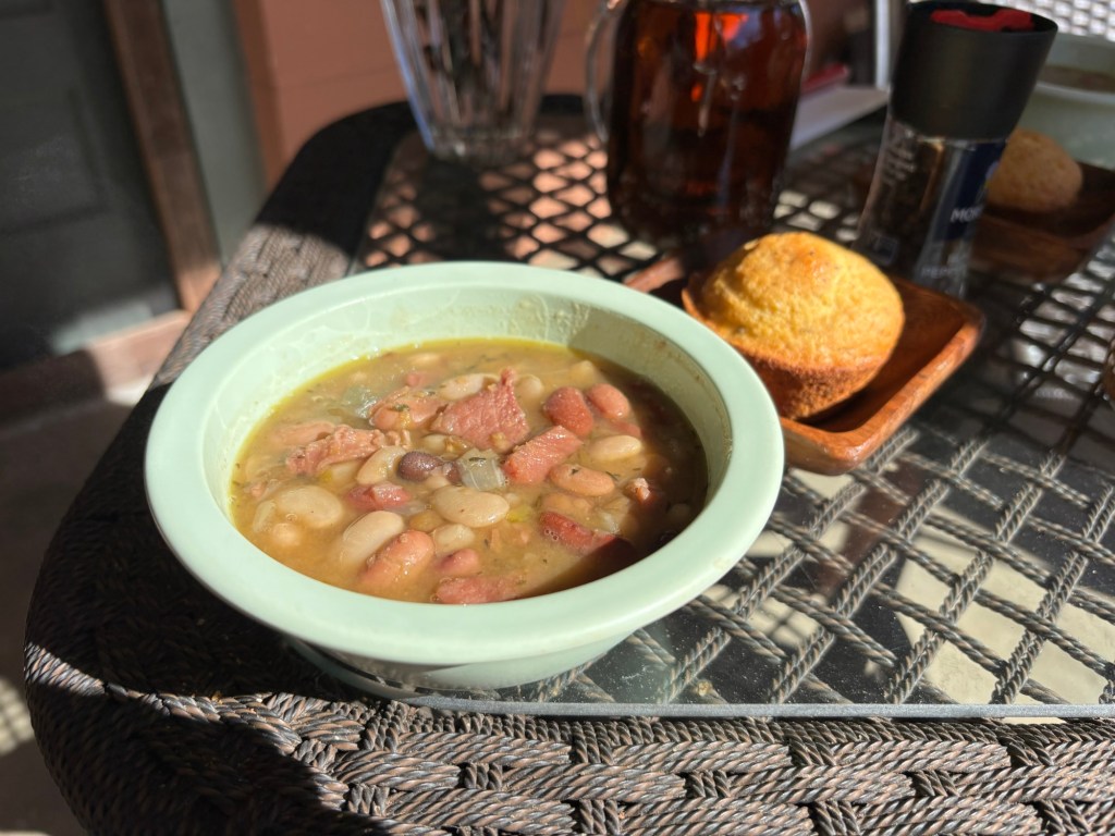 And it’s just warm enough to eat outside. It = weather as well as soup.