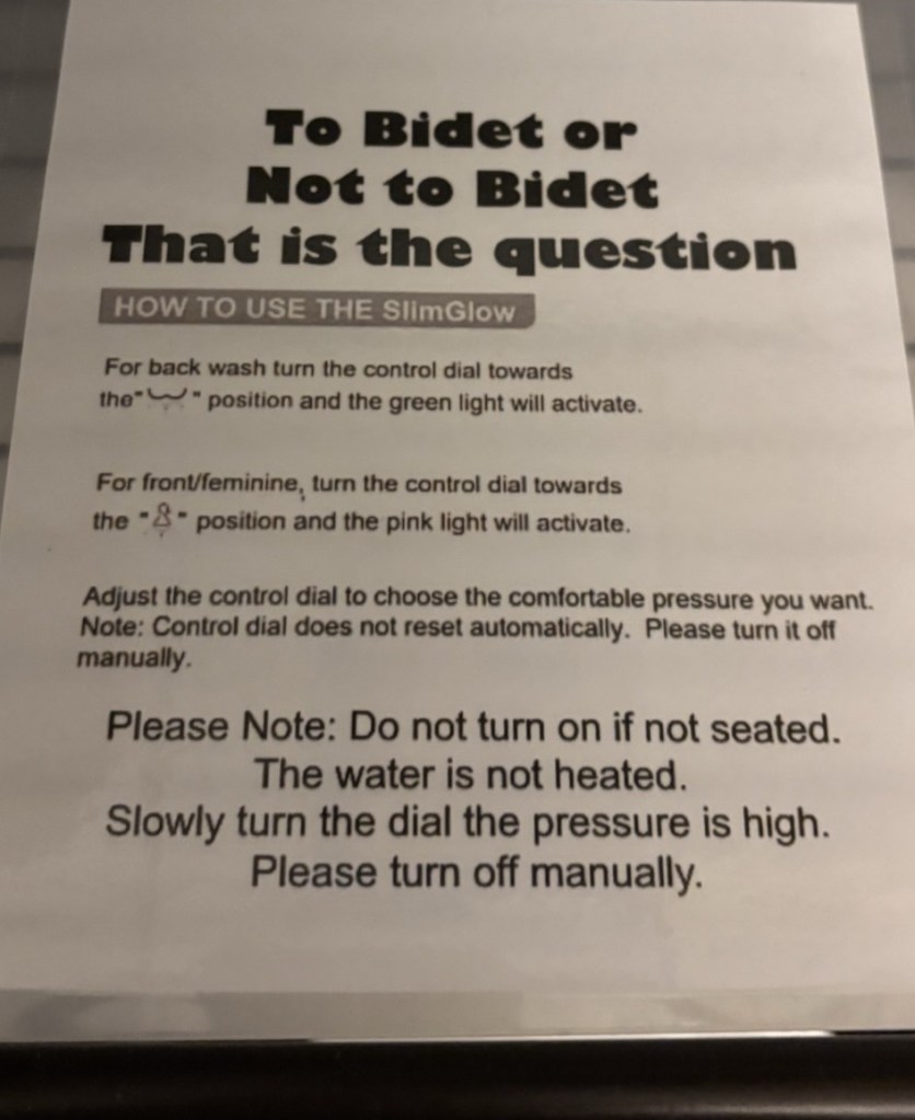 Just delightful . . . even the bidet instructions!!