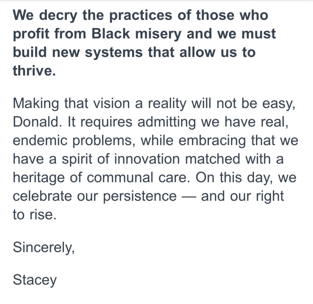 I love gubernatorial candidate Stacey Abrams’ email today discussing Juneteenth and her vision for Georgia.