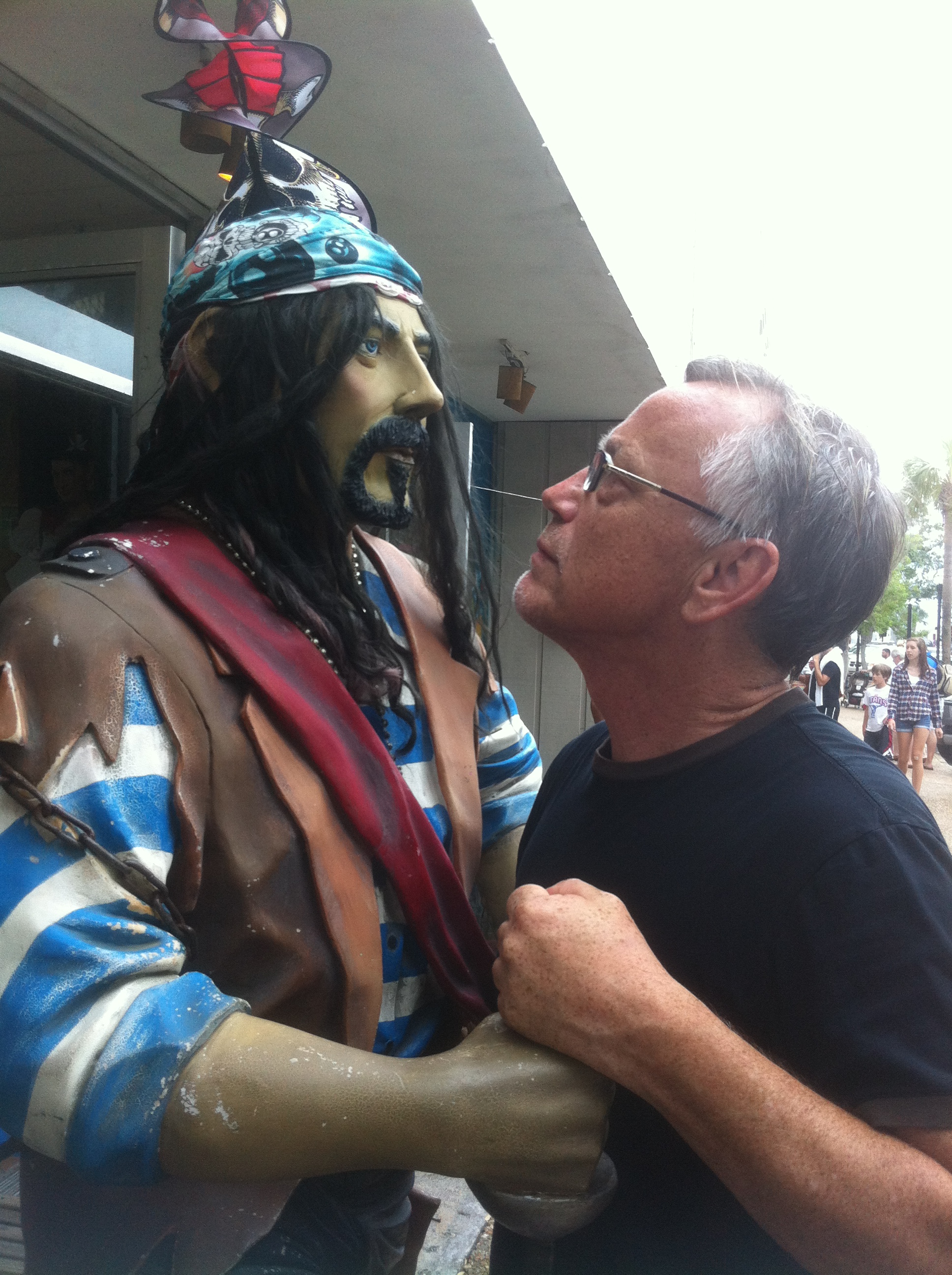 He had trouble looking me directly in the eyes at first. But then we really got into the heat of battle. I WAS not backing down for no blame cutthroat pirate!