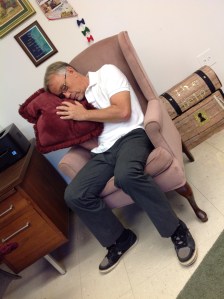 As faithful blog followers know, I have a buddy “named” Riboclavin who is quite a character. (And of course we all know his name isn’t REALLY Riboclavin, come on, but as I said in a post from way back, “I’m just not very good at giving people fake names if they don’t want their real names ‘published’ on my blog because, heaven forbid, the ‘tens’ of people who follow my blog might see their name and … and … idk.”) Anyway, here he is, rocking. And even though that dualistic rocking chair looks über huge, Riboclavin looks comfortable and relaxed. And, really, isn’t that what counts?