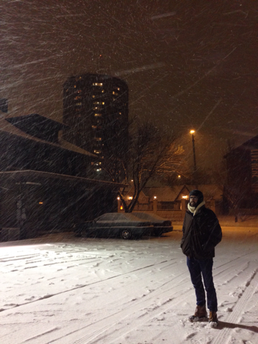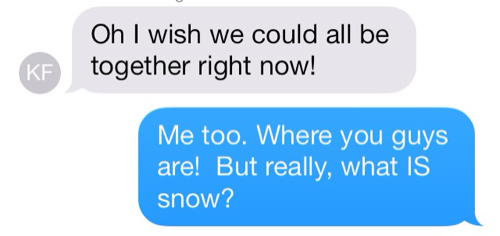 So last night good friends Donnie and Kinzie (Donnie is at SCAD–the Savannah College of Art and Design–studying film, and Kinzie is a talented photographer) texted me from their holiday soiree in hometown Urbana, Illinois: