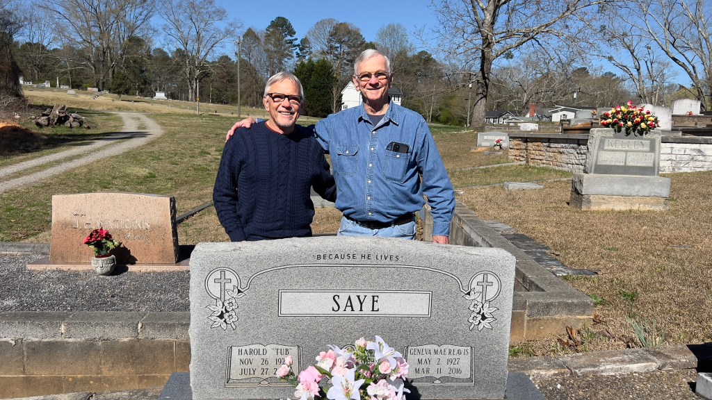 Busy this morning.My older brother Lamar met HR and me to help. Here we are in front of our parents’ monument.