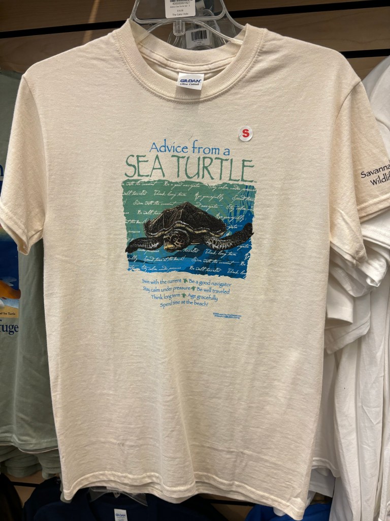 Recently, when Robert and I drove over to the Savannah National Wildlife Refuge, I fell in love with a series of very cool T-shirts featuring area animals and what we can learn from them. So I decided to feature one on each T-shirt Tuesday for a while.