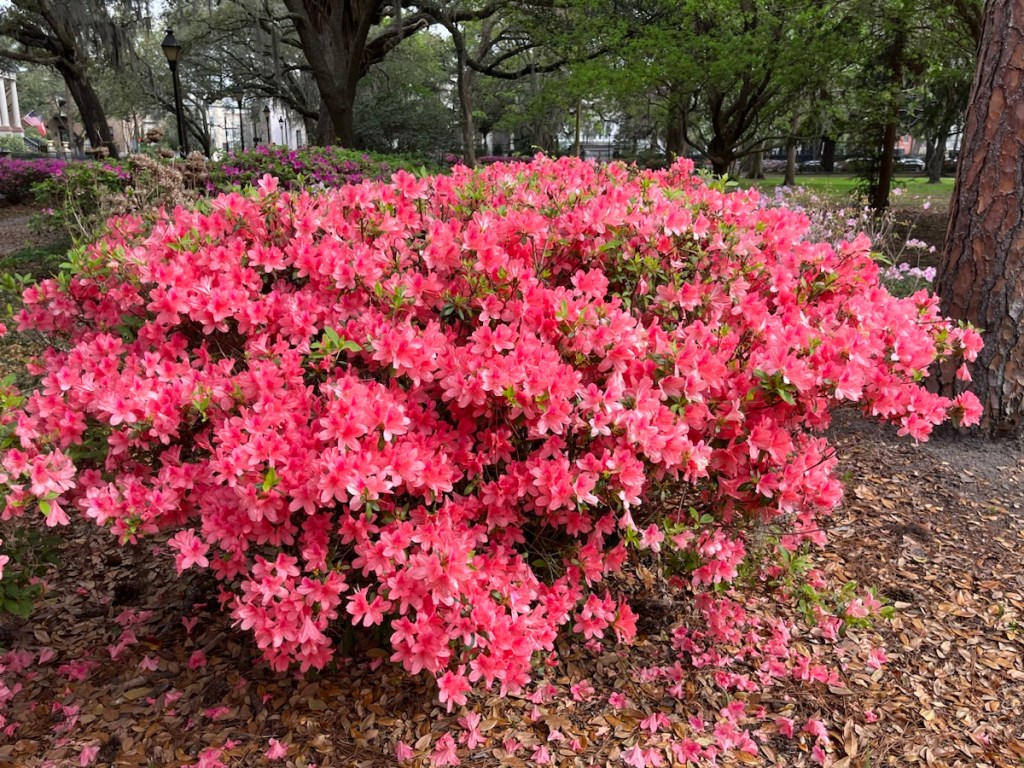 1. A beautiful spring (almost) morning walk yesterday around Savannah’s Forsyth Park. Here’s Robert trying to steal the show. But I think the azaleas won.