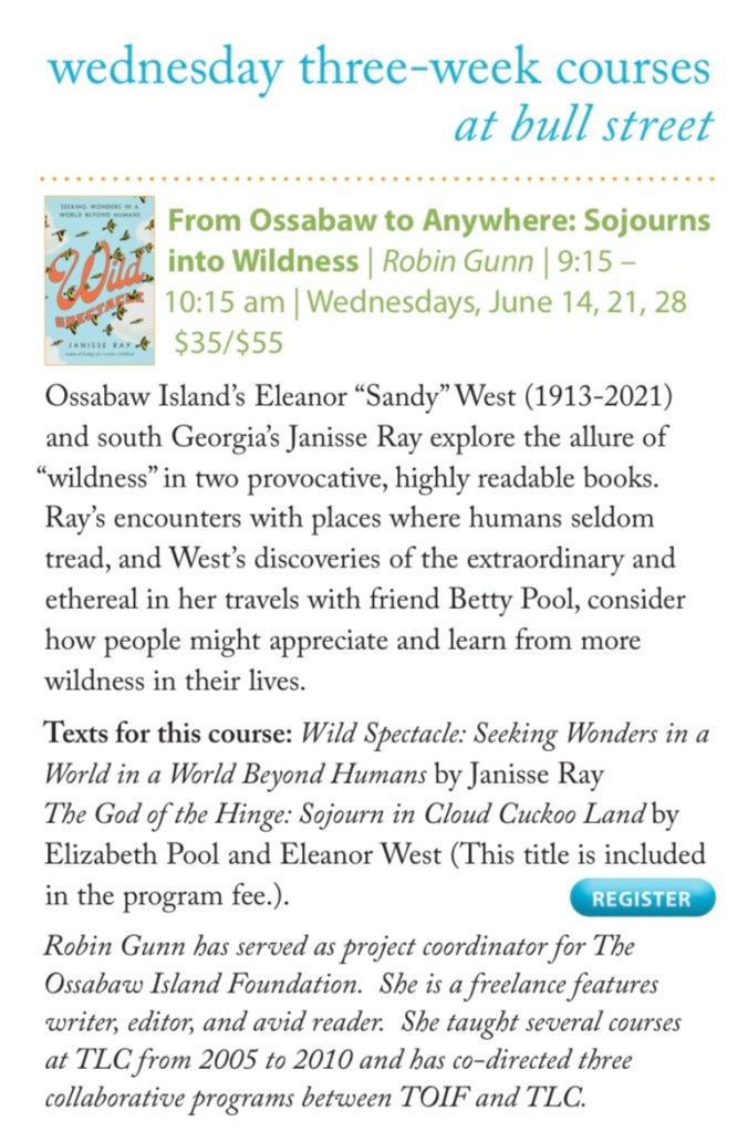 So I had a bit of a challenge locating the geography of my wildness/wilderness homework. I considered the thick, life-sustaining mud of the area marshes, but where would I sit to meditate? The trails at Skidaway Island State Park? Maybe, but the last time I biked the trail, with wobbly bike, I narrowly avoided running over an eight foot deadly snake. Robert, riding a few feet behind me, said the snake was two feet max and probably harmless. Maybe my own Washington Square, the northeast most of Savannah’s twenty-two remaining squares, with its proximity to Trustee’s Garden, the oldest neighborhood in our city? With many a tale to tell.