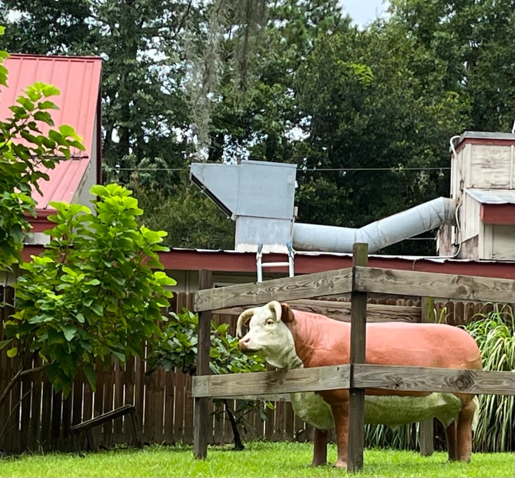 When I told him it was a statue of a cow, he got all huffy and stormed off toward the (real) chicken coops and the giant oaks proudly displaying their recently rained-on Resurrection Fern. (Do you know about Resurrection Fern? It looks brown and dead until rain. Then it is gloriously alive.)