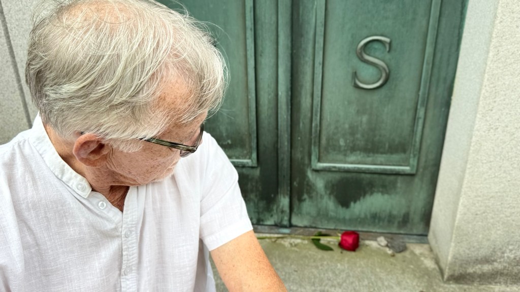 Someone (who?) had placed a single, long-stemmed, radiantly red rose at the foot of the doors, below the two “S’s.”