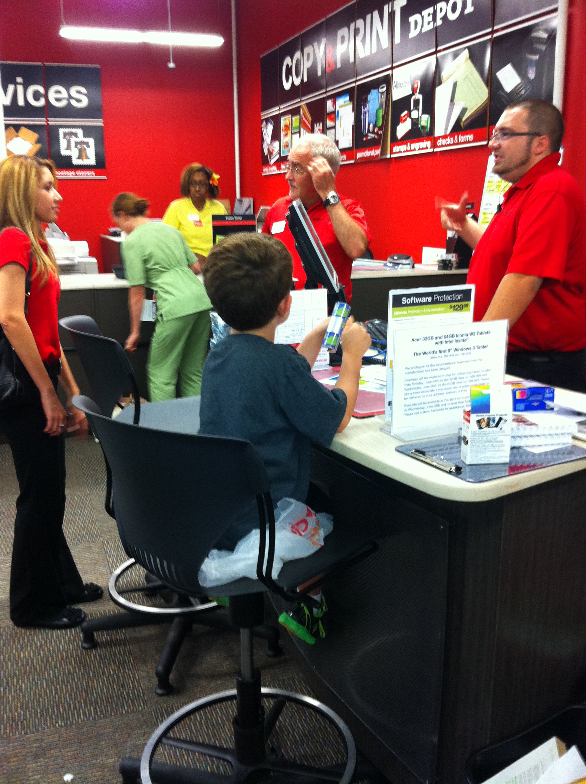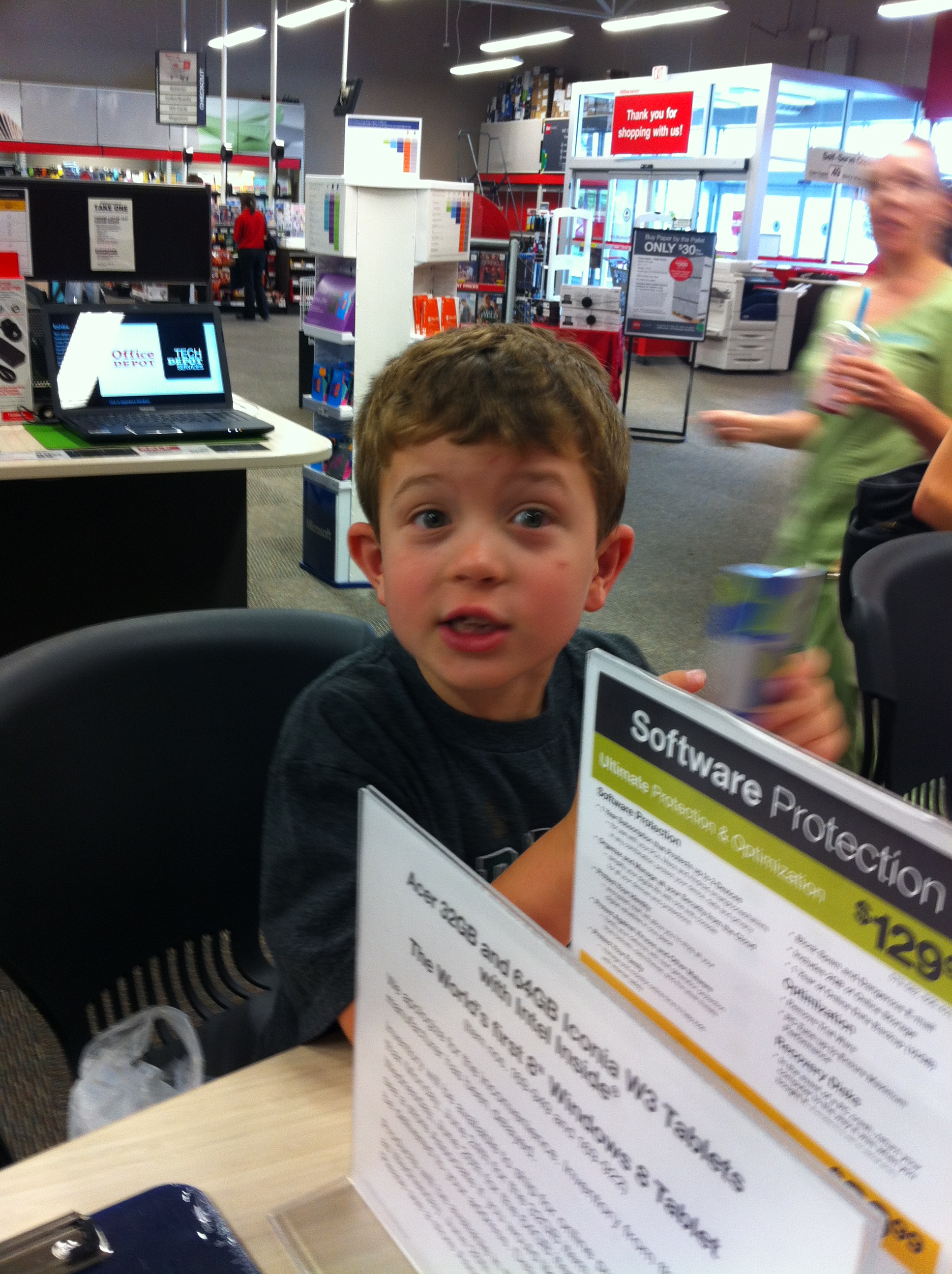2. Six-year-old Grandson Daniel pretending to be part of an Office Depot sales associates meeting yesterday. (He got bored when his mother and I were doing some shopping.) (And he has his grandfather’s sense of humor.) (I thought it was a lot funnier than the Office Depot folks did.)