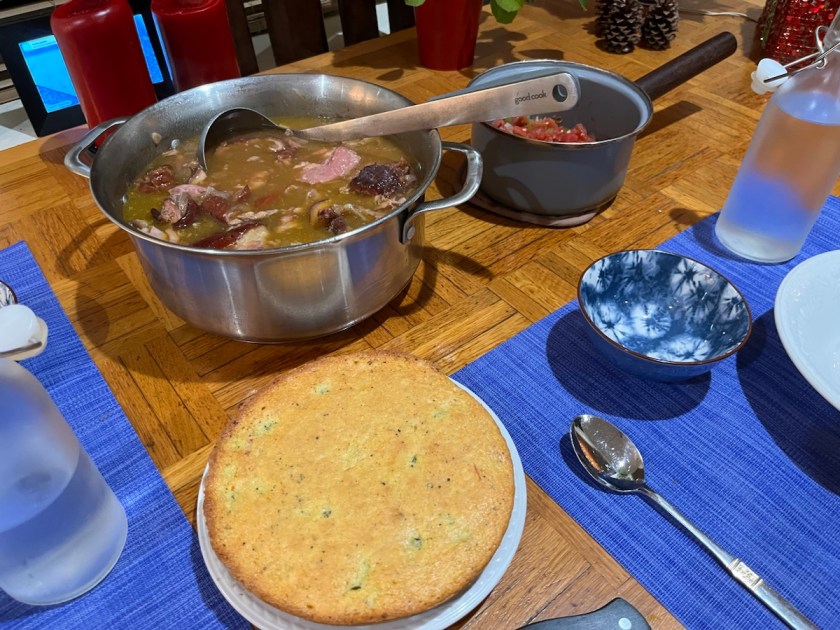 And for some reason, out of the blue, when I was making the cornbread, I remembered that my mother used to put a heaping teaspoon of mayonnaise into the batter. Makes it creamier.