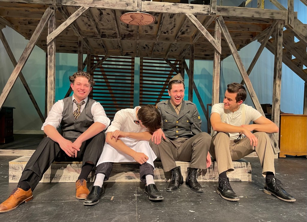 Here he is (far left) in a light moment during rehearsals with his three best buddies, all in the play.