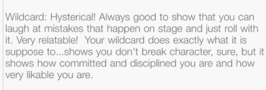 Let me have Daniel explain. The short video below is actually part of D’s prescreens/prep for musical theatre college applications. For a portion called “the wildcard,” Daniel took a risk and decided to explain about what went wrong with the closing performance of Bright Star.
