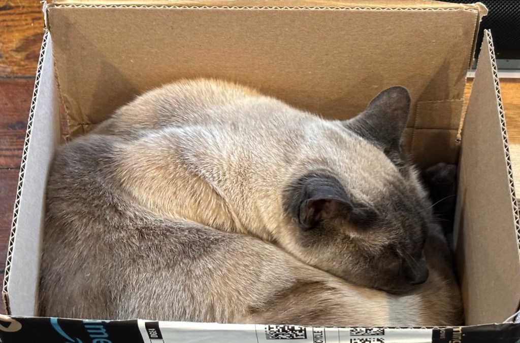 4. The absolute, joyful contentment that kitty cat Benny finds in (literally in) cardboard boxes.