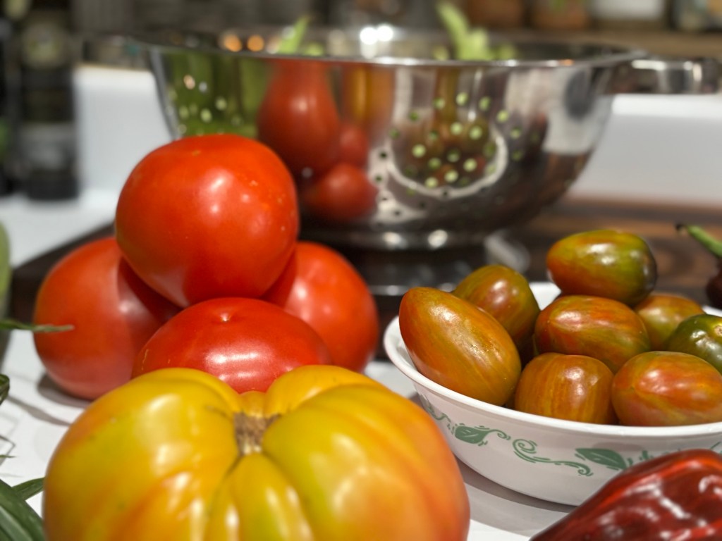 1. My favorite summer lunch: simple Tomato Sandwich with vine-ripe tomatoes, accompanied by mayo, thinly sliced Vidalia onions, and a sprinkling of fresh thyme, salt and pepper.