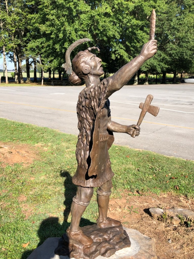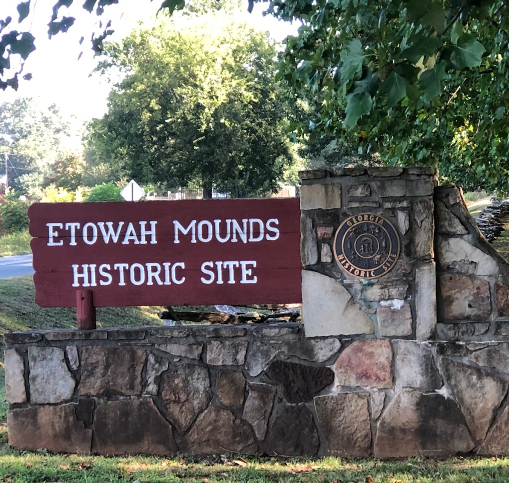 I grew up about an hour away from these mounds in the tiny Cherokee County town of Ball Ground (so named after a version of baseball played by Native Americans). We were the Ball Ground School Indians. My mother had Cherokee blood in her ancestry and was born and raised in the nearby hamlet of Talking Rock. North Georgia is replete with Native American place names (I suppose most everywhere is). I graduated from Cherokee High School, a rival of nearby Etowah High and Sequoyah High. I rooted for the Atlanta “Braves.” As a young person, I never quite had the vision to see beyond the “cute Indian-ness” of my heritage and geography.