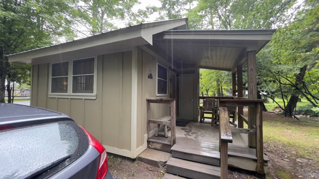 We arrived on a rainy day and mainly kept inside or on the porch of our tiny cabin situated on a bubbling creek.