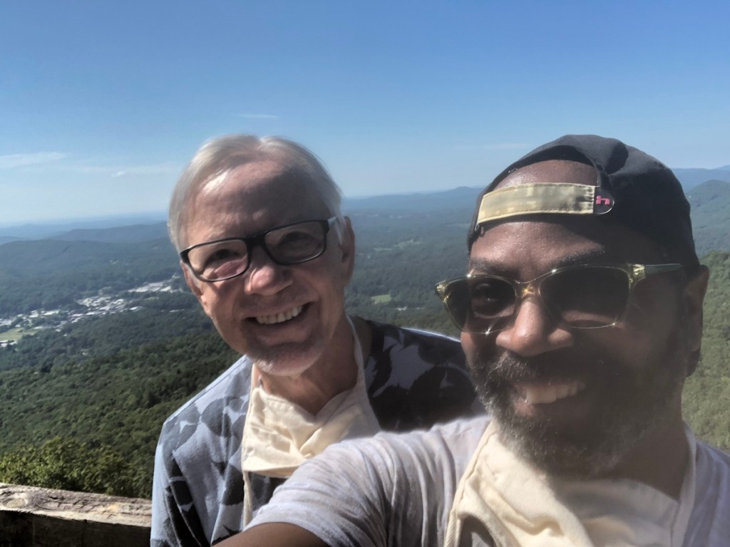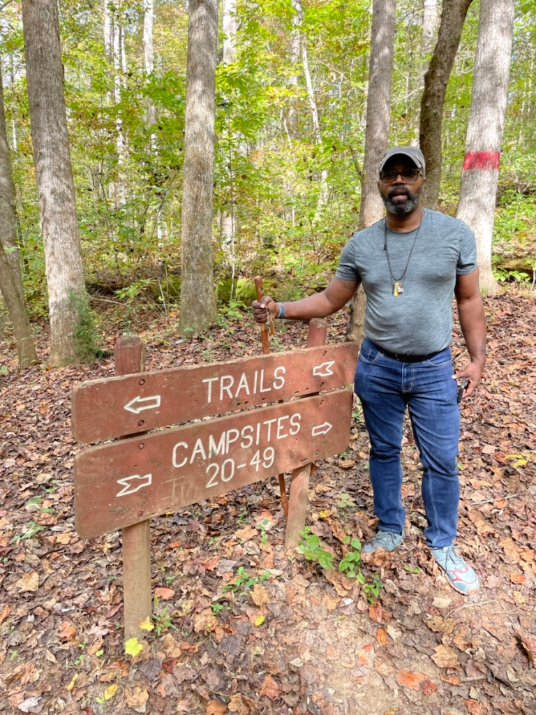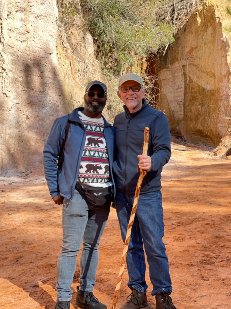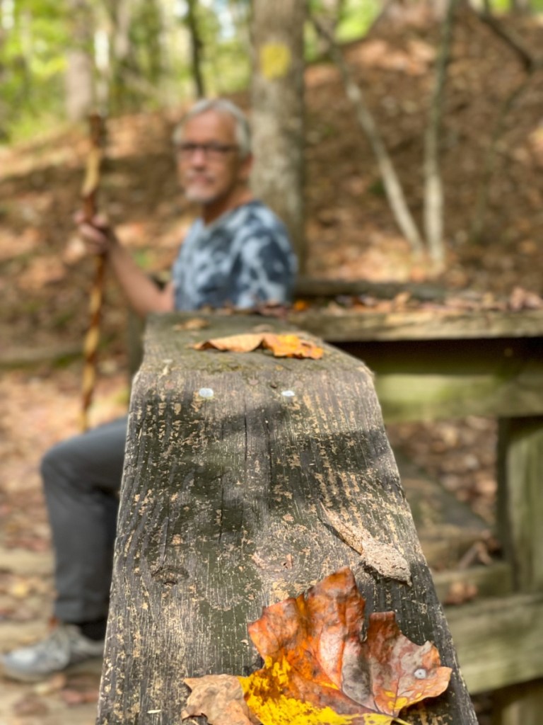 Finally, here’s Robert on a Hard Labor hike lecturing me and rambling on and on about something or other. If I remember correctly, it concerned the very best strategy to meticulously step over large exposed tree roots (and of course he should know, growing up in inner-city Baltimore) in order to avoid forestation, or something like that. (I often stop listening by telling him I really need to pause for a bit and “meditate.” He knows I have issues with anxiety, so he usually buys it.)