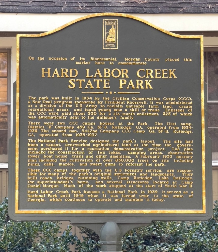 Hard Labor Creek State Park near Rutledge east of Atlanta is a 5,804 acre park named after Hard Labor Creek, a small stream that meanders through the park. There is uncertainty about the derivation of the creek’s name—either from enslaved people who tilled the summer fields, or from Native Americans who found the area around the creek difficult to ford.