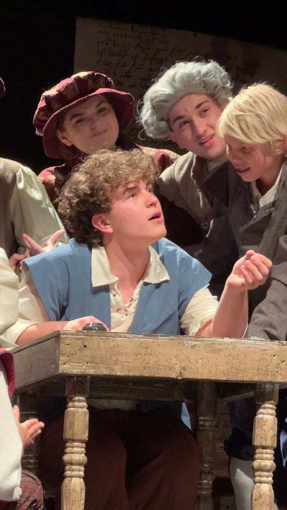 Daniel, second from the right, chatting with some of his high school buddies who came to support him at the play’s second performance.