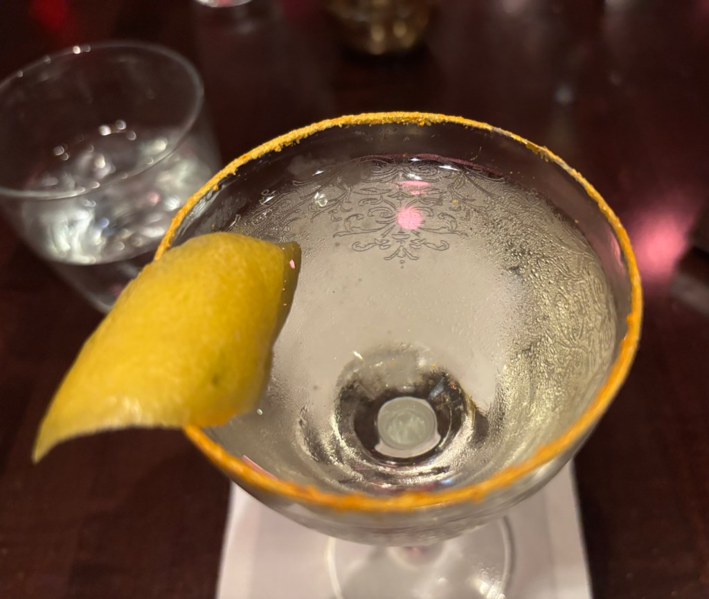 5. My 24Kt gold-rimmed cocktail at the Charleston Place Thoroughbred Club after the harpist rudely took a break. (We had claimed squatter’s rights at the hotel by that time.)