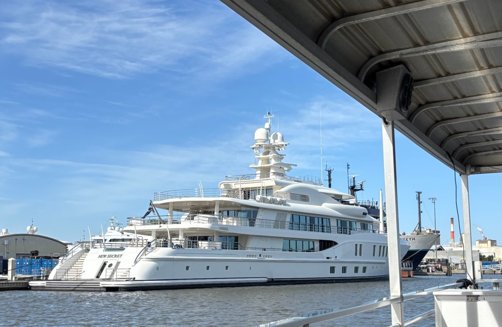 The white structure to the right is actually a large yacht which had been “shrink wrapped” for some kind of moisture-control work.