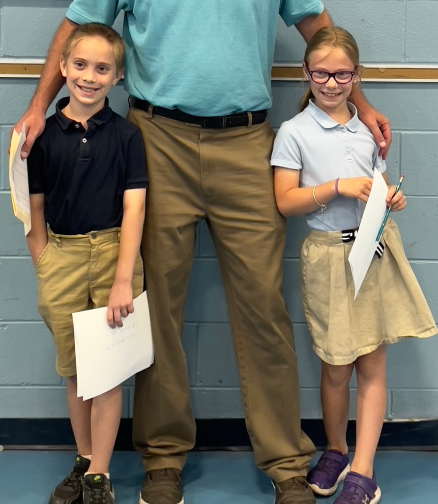 Ex-wife Donna, Madison, Me, Matthew and HRAnd the twins’ mom Emily (a May Howard teacher) standing.Matthew’s lunch: pizza, strawberry milk and a bowl of corn. Madison had cleaning duty today.