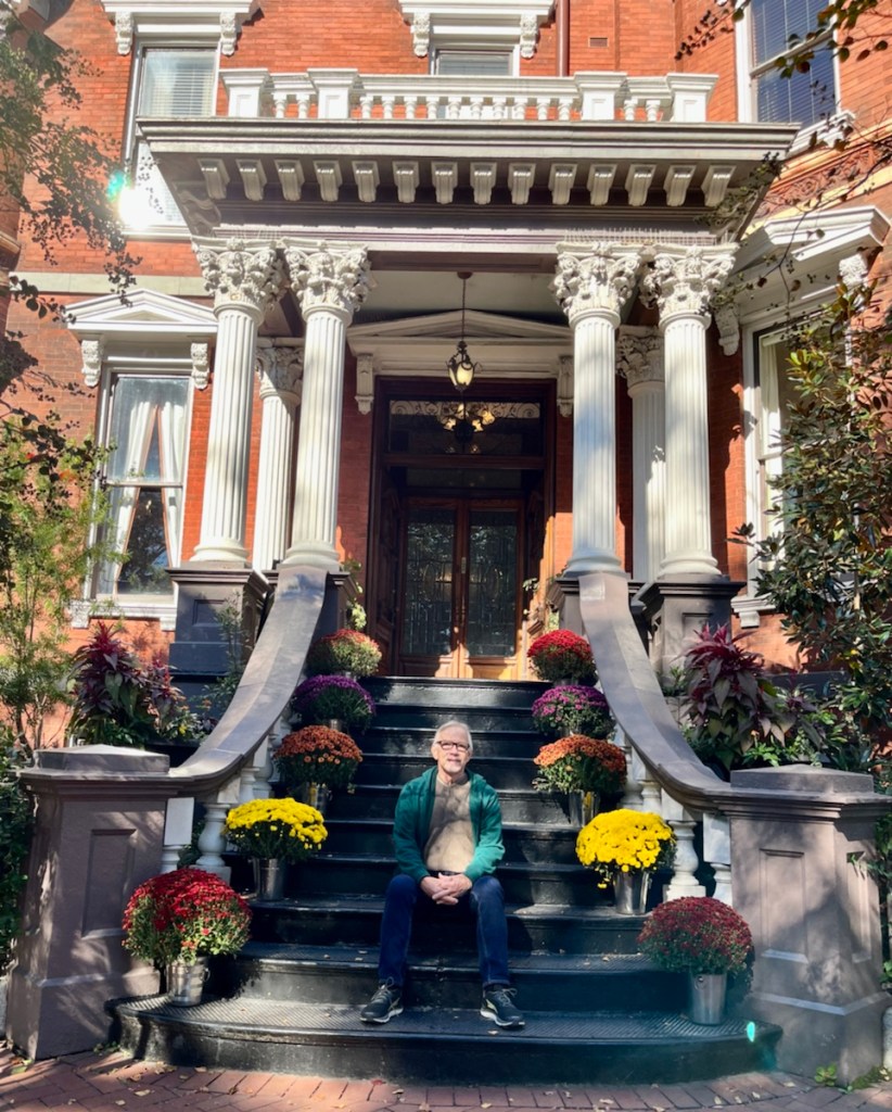 On the steps of the Kehoe House Historic Inn, near us on Columbia Square
