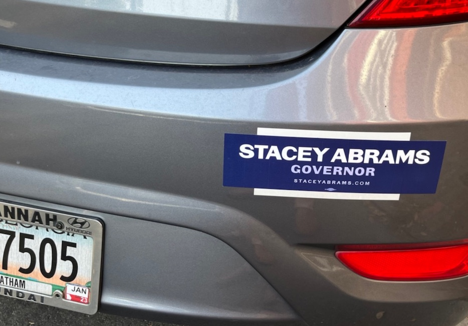 [A not-so-happy sidenote: Yesterday someone keyed the side of our car near the Abrams’ decal. The battle for Georgia’s soul is not pretty.]
