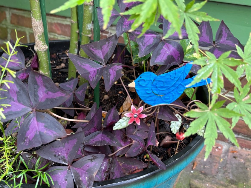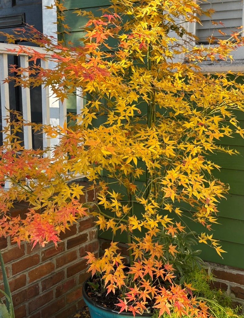 4. Our little potted Japanese Maple (aka JM), stubbornly refusing to admit that it is now FALL.