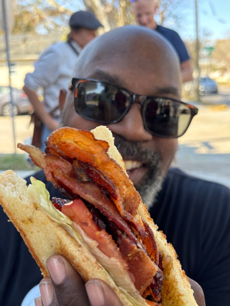 Oh, we finished up the walk back at the diner, sharing a … little BLT.