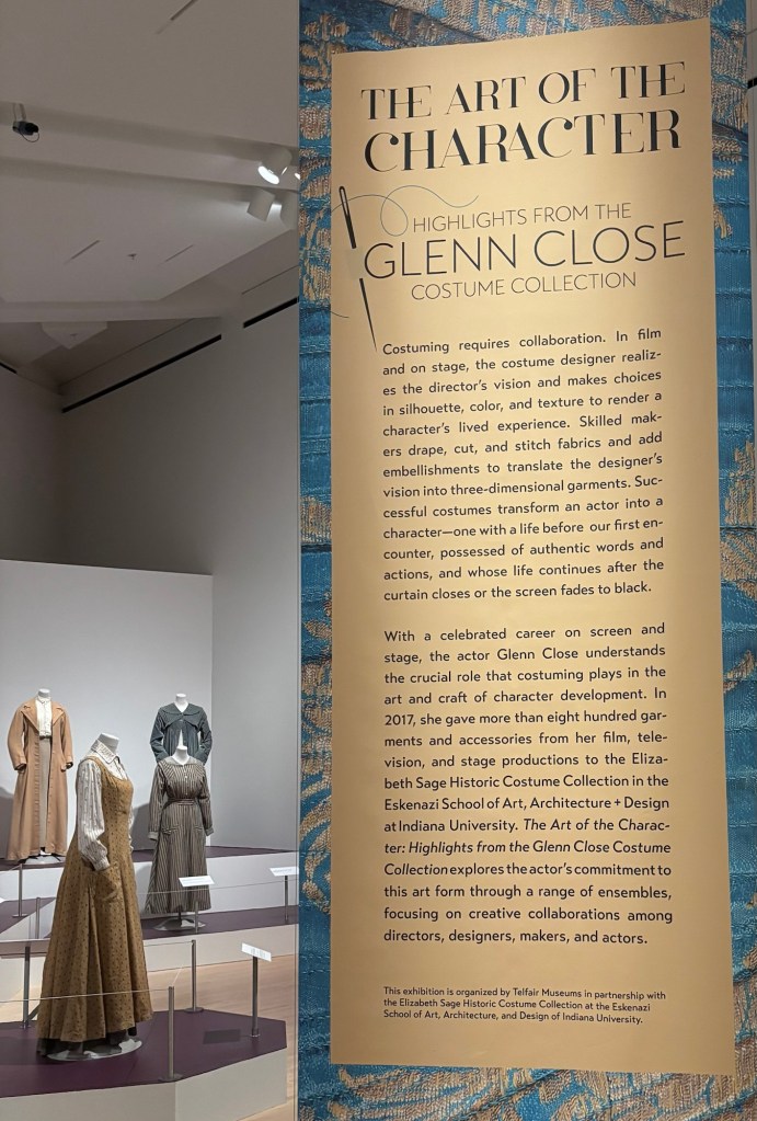 A few samples of Close’s archive of outfits she wore in various projects over the years on display at The Jepson.