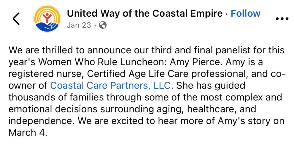 5. Proud of Daughter Amy being named by the Savannah area’s United Way as one of the Women Who Rule panelists.
