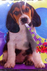 5. Taking this picture at Party City of a puppy heralding a celebration: