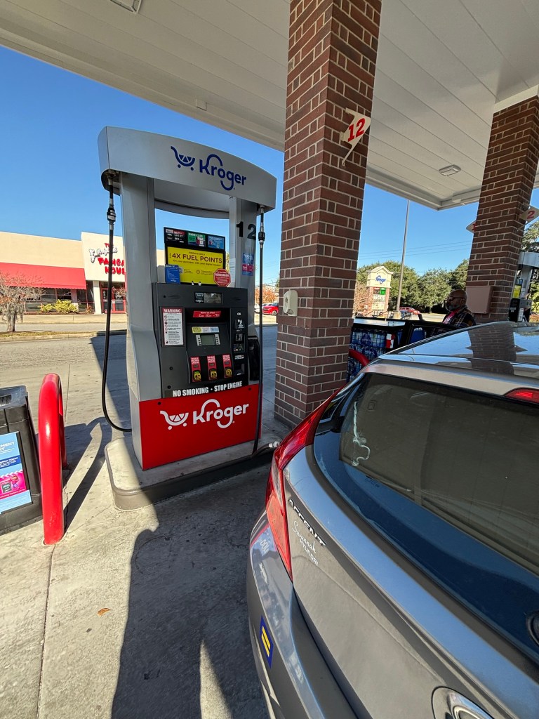 Pulling up to the gas pump at Kroger this morning, I got out of the car …